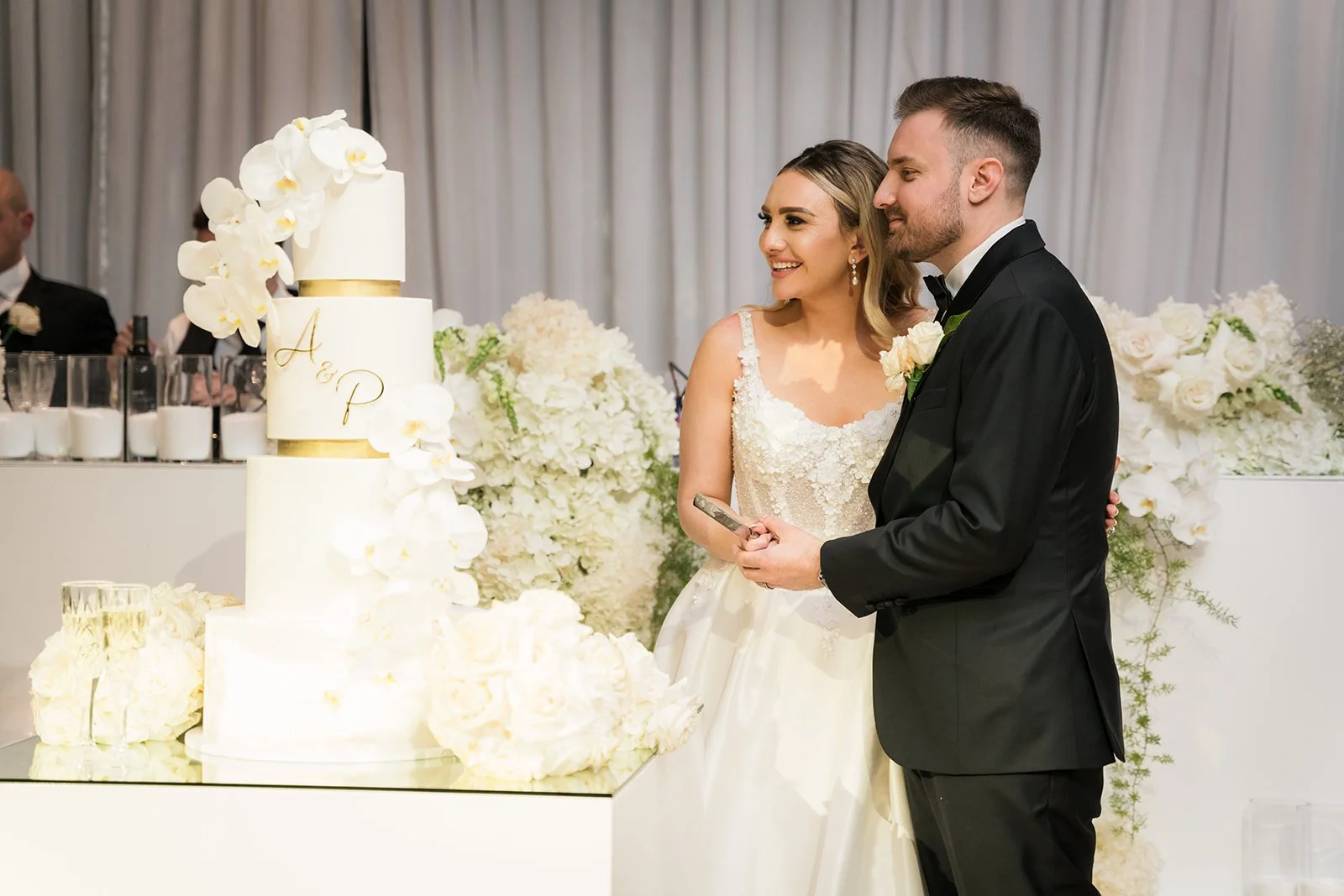 What truly elevated the piece was the personalised acrylic detail made by Cabe & Co, inspired by the couple’s monogram and stationery. It tied the entire look together in a way that felt incredibly cohesive, elegant, and considered.